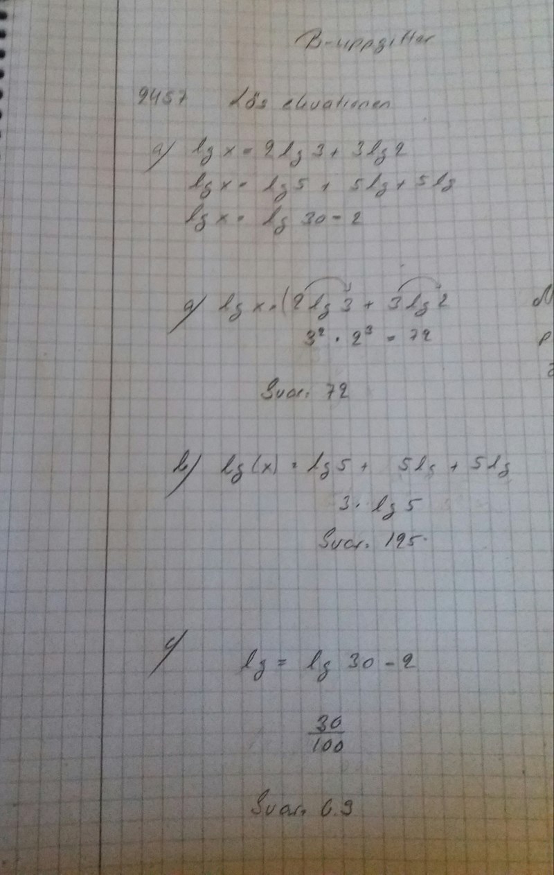 Yngve skrev :Om du är osäker på hur du ska skriva eller vilka räkneregler som gäller för logaritmer så har du en bra sammanställning här.