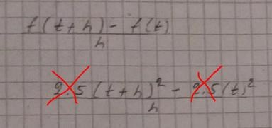 I din första uträkning efter att jag har uppmanat dig att inte hoppa över steget där du skriver vad f(x) och f(x+h) är så gör du precis det. Du hoppar över det (se bild). Varför?