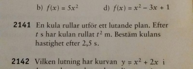 Funktionen som beskriver hur långt kulan har rullat på en viss tid kan du kalla för , där anger hur många meter kulan har rullat efter sekunder.