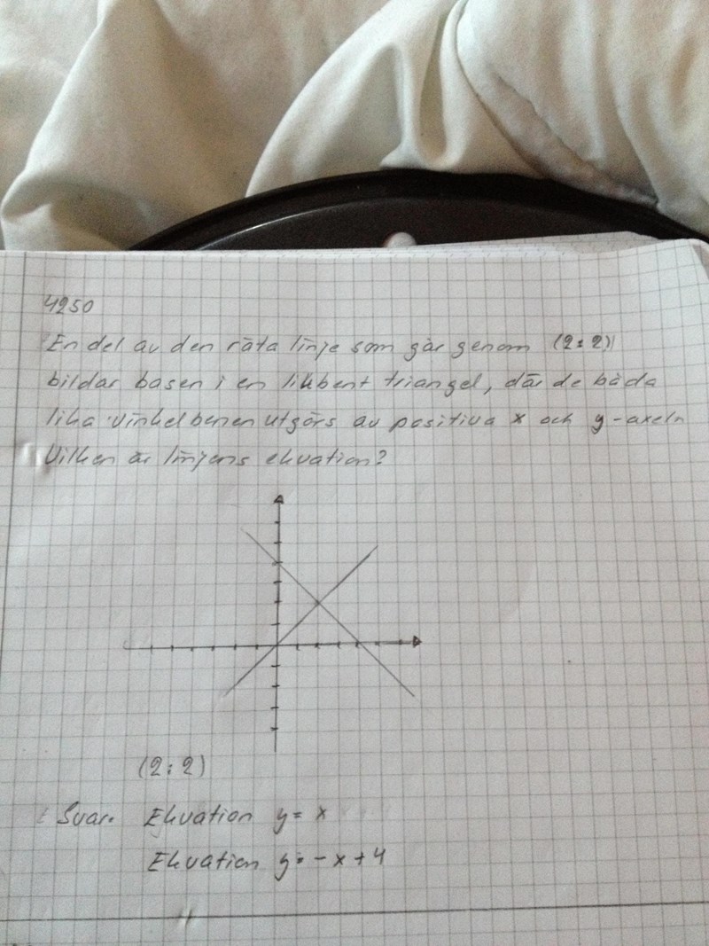 Du har angivit två ekvationer men endast y = -x + 4 är svar på frågan.