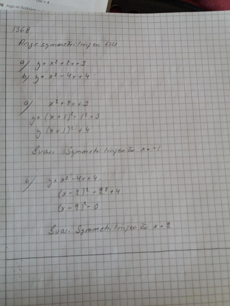 Bra. Skall man påpeka småsaker så har du tappat bort ett " = " på a-uppgiften och "y = " 2 ggr i b-uppgiften, men det är som sagt småsaker.