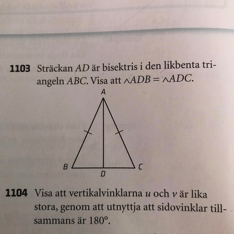 De två trianglarna är mer än bara likformiga: de är kongruenta. Det medför att de två vinklarna ADB och ADC är lika stora.