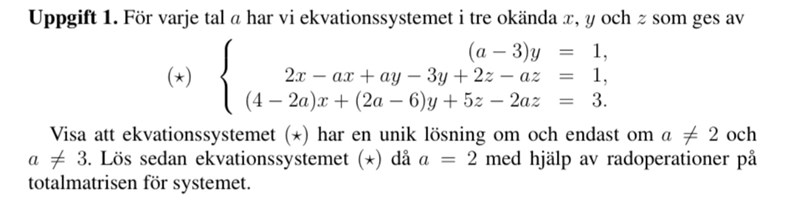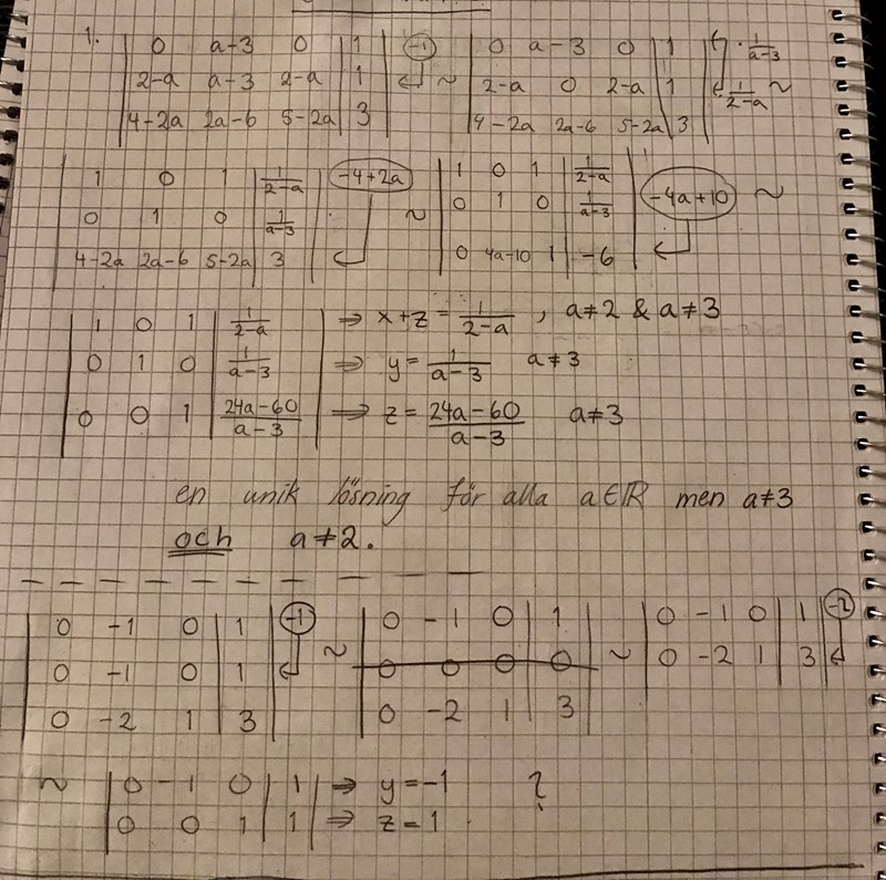 Har jag gjort rätt på första stjärnan? Och på andra stjärnan så fick jag bara ut y=-1 och z=1, ska jag tolka detta som att det finns oändligt med lösningar??