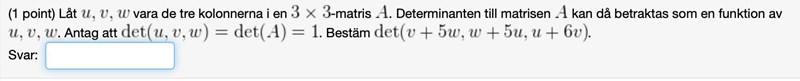 Sedan har vi en räkneregel för determinanter som säger att det(AB) = det(A)det(B).