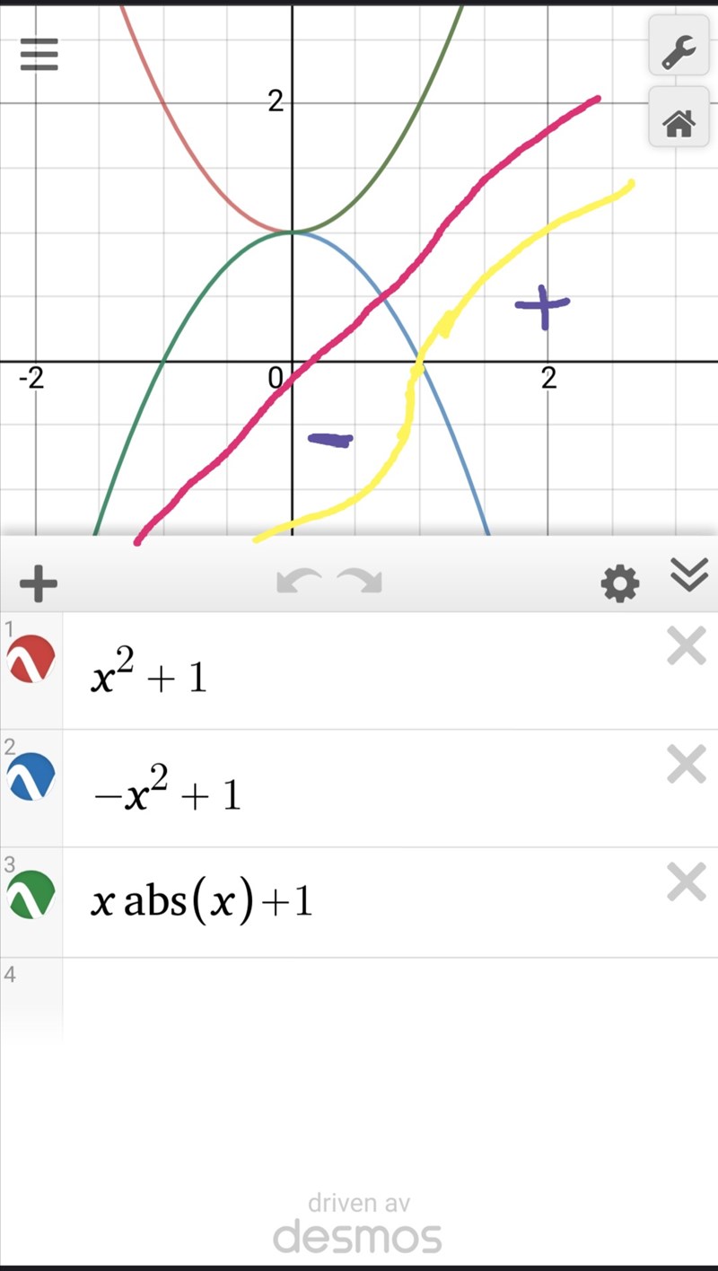 PATENTERAMERA skrev:x|x| + 1 = y|y| + 1 |x|2 = |y|2 |x| = |y| (A)