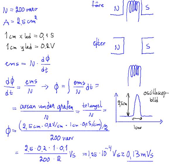 min tänkar att svar blir 0,025 Wb men varför de dela med antal av varv (200)?? och varför de har enhet Vs och inte Wb