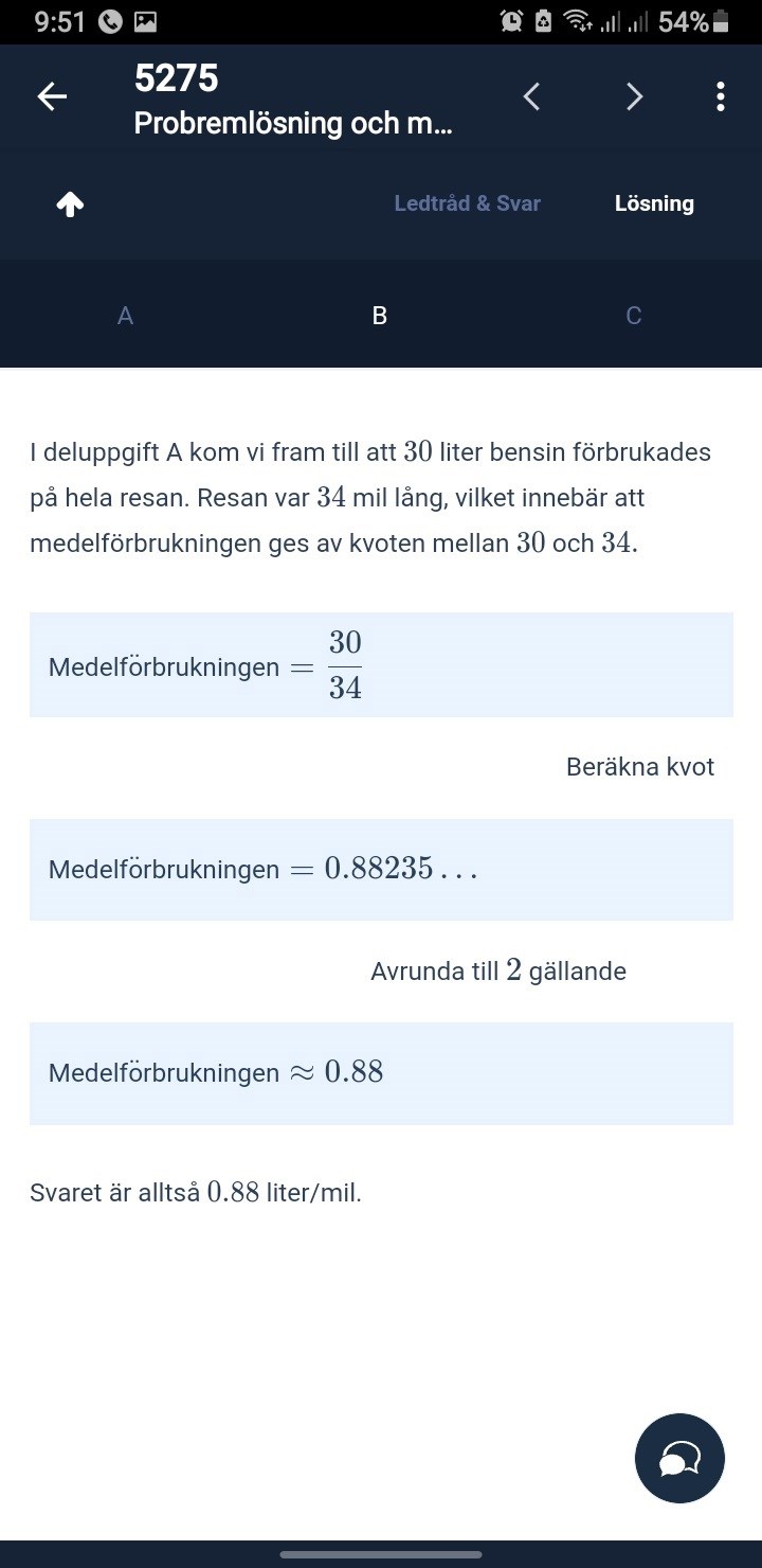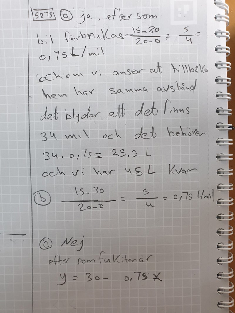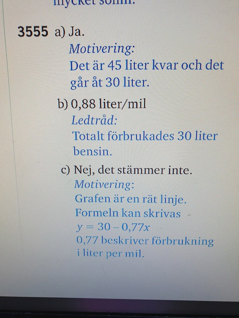 Men facit göra det på annan sätt vem är rätt? De räknar hur mycket bensin de förbrukar i den först gång och sen på den ändra gång och summan divideras med avstånd? Men det lite konstigt för mig
