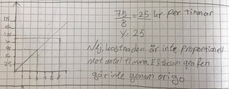Att hyra en cykel på ön Ven i 3 timmar kostar 75 kr. Att hyra cykeln i 6 timmar kostar 120 kr. Är kostnaden proportionell mot antalet timmar?