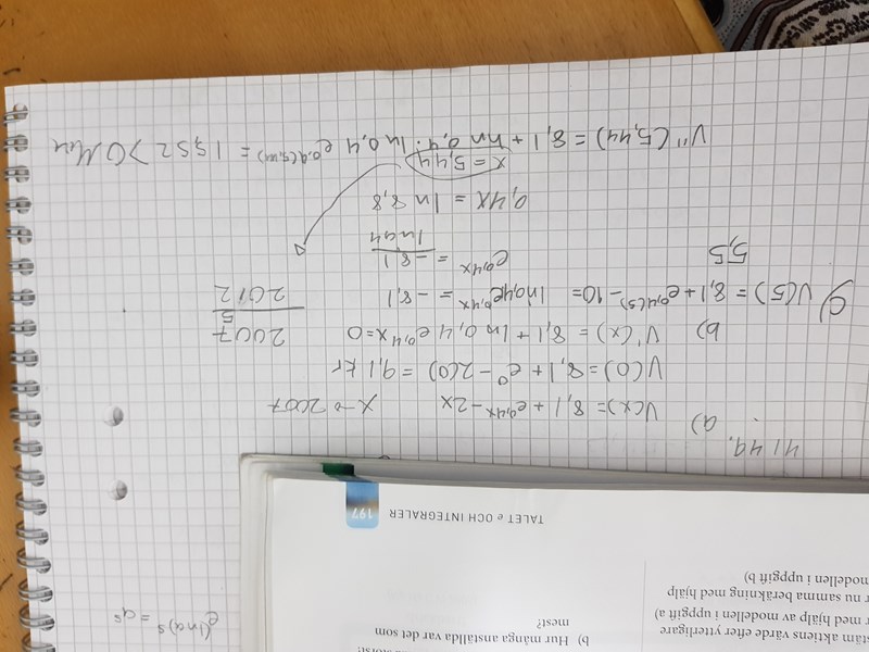 Mitt svar på b) är 2012 och på c) 5.5 men facit säger 2011 och 5.05.