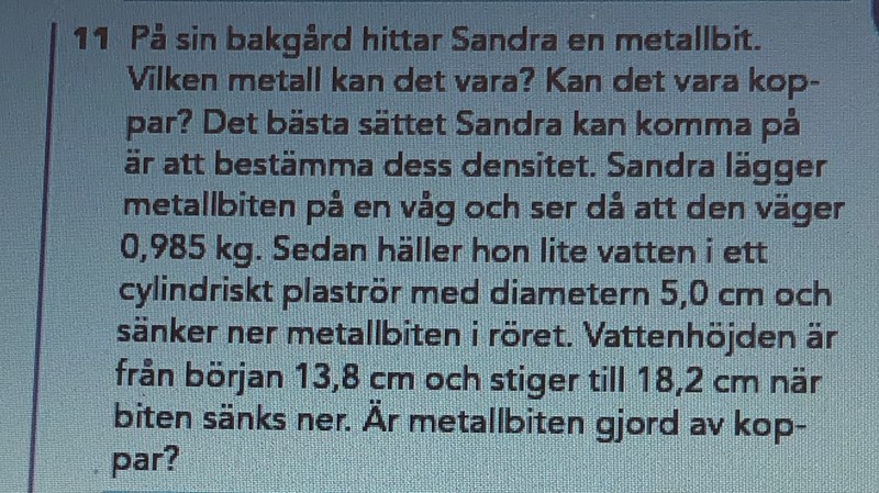 Är metallen gjord av koppar? (Stämmer min uträkning?)