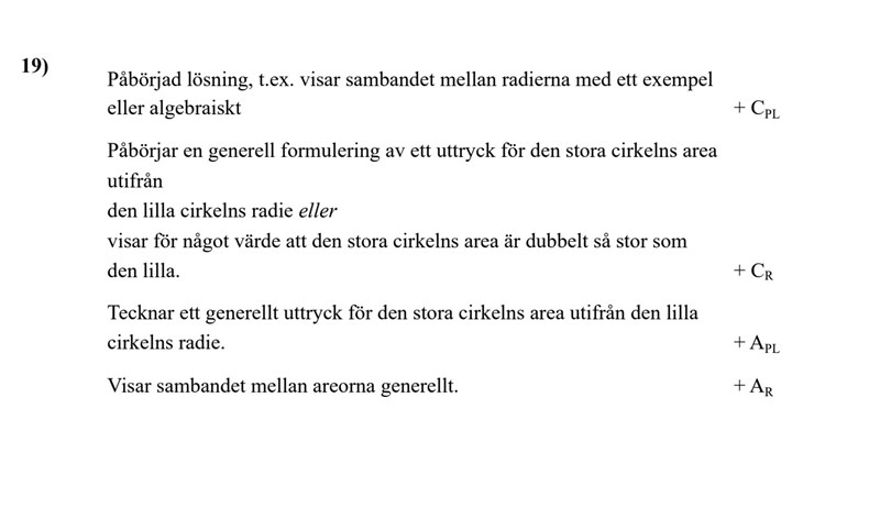 Ser bra ut. Kanske man skulle motivera att triangeln är en halv kvadrat då kateterna är den lilla cirkelns radie så att man inte bara säger "R = Roten ur(2r^2)".