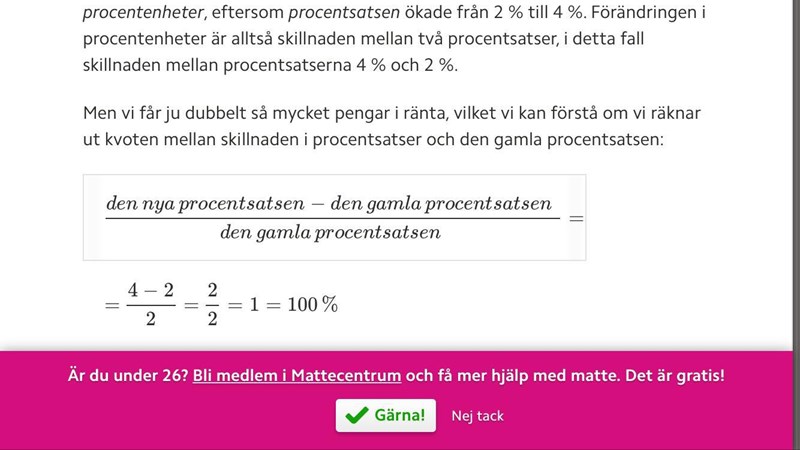 För att räkna procentenheter deler man inte med gamla procentsatsen ?