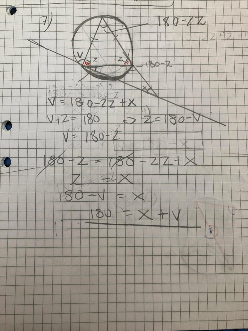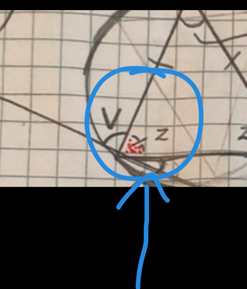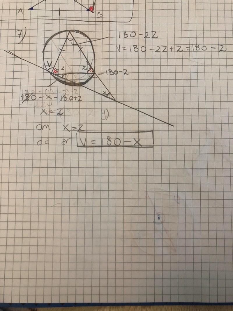 Nästa steg blir att kolla på yttervinkeln v och den röda vinkeln z som ligger bredvid varandra exakt