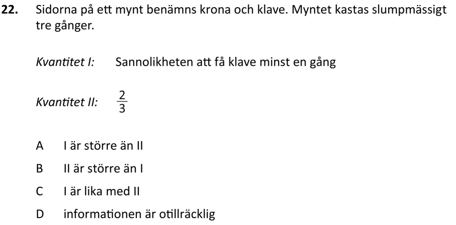 Är myntet välbalanserat (2025-04-05, pp 5, uppg. 22)