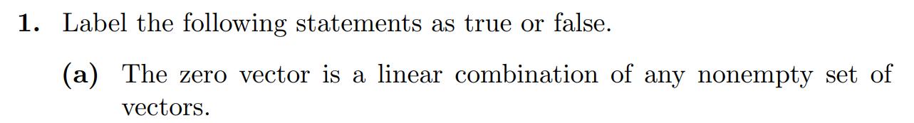 Därmed borde svaret på frågan vara Ja! Nollvektorn är en linjärkombination av alla mängder förutsagt att mängden ej att den tomma mängden. Har jag uppfattat rätt?
