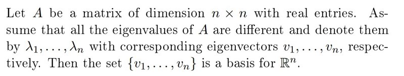 Jag vet att settet är en bas om settet är linjärt oberoende och spannar R^n, hur kan jag bevisa detta? Kan faktumet att egenvärdena alla är unika hjälpa oss att bevisa att settet är linjärt oberoende?