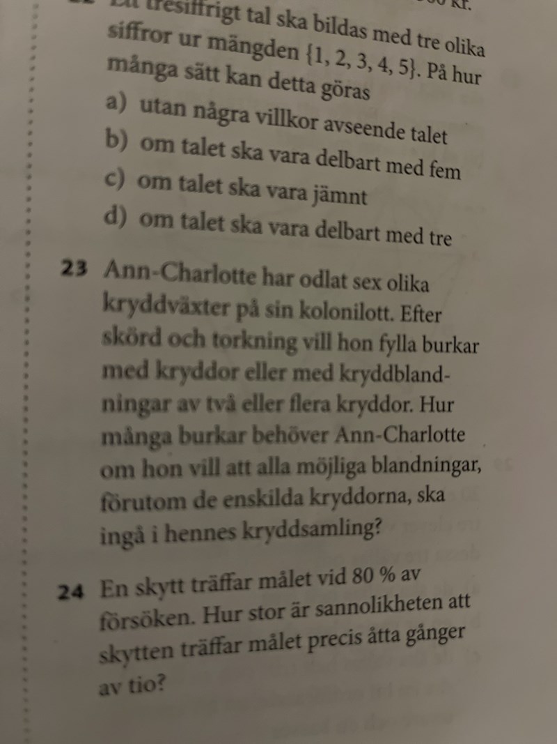 Hej, jag kommer fram till 57 butler men i facit står det 63. Jag kan ju få till 63 om jag räknar med burkarna som bara innehåller en kryddväxt men det är väl inte det man ska göra? Så är det jag som tänker fel eller är det fel i facit?