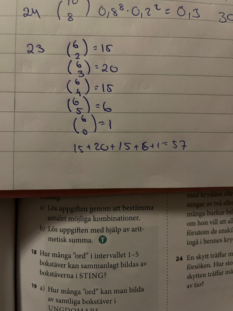 6 över 0 förstår jag ej, såvida man inte räknas 2^6-1