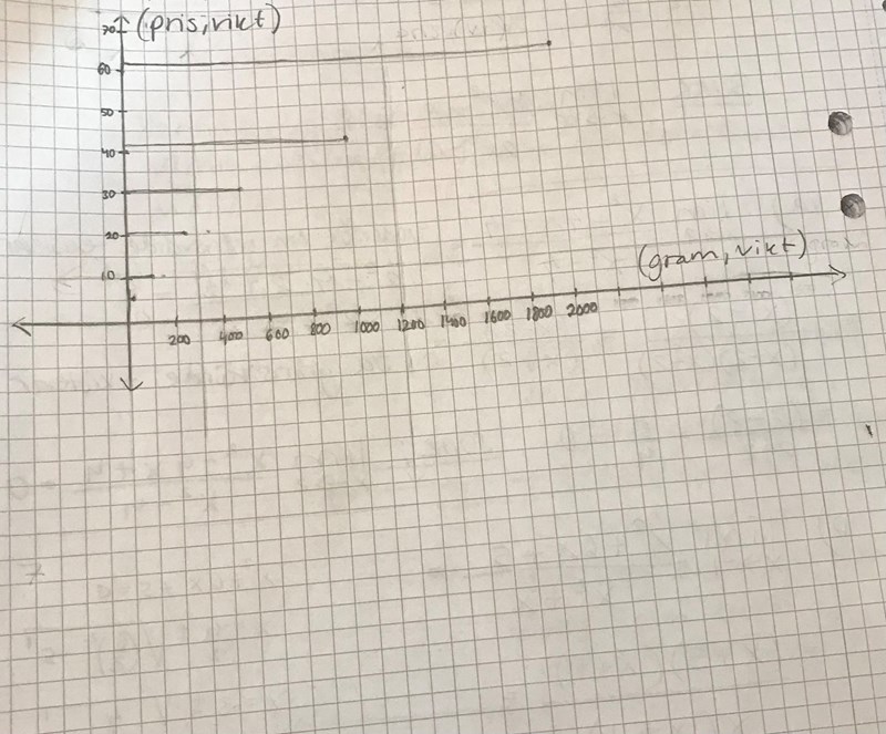 I uppgiften är det lurigt att se om de vill ha vikten som funktion av priset (Vikt = ...), eller priset som funktion av vikten (Pris= ...).