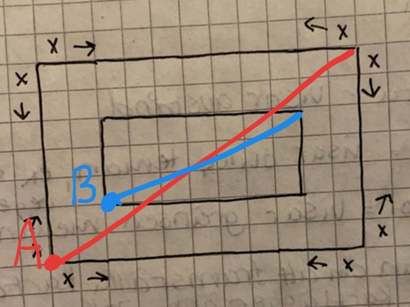 Tänk dig sedan att du flyttar den lilla rektangeln x åt vänster och x neråt.