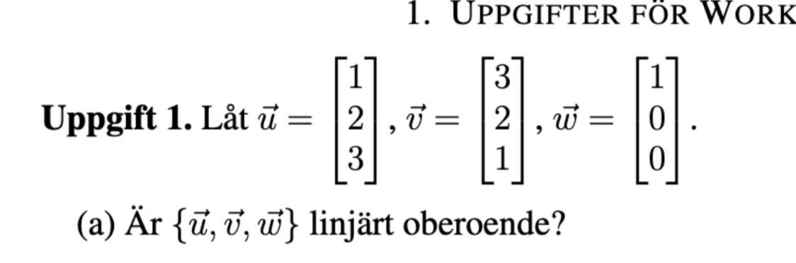 Hej! Enligt nedan fråga, hur vet jag om vektorerna är linjärt oberoende?