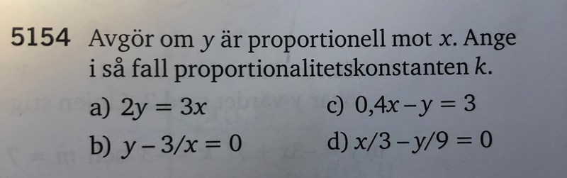 Renny19900 skrev:Hur kan man se om y är proportionell mot x om det tex står