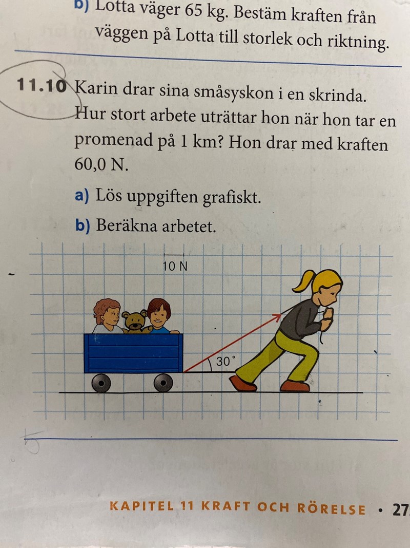 Mitt försök på b) w= f•s = 60•1000= 60 KNm