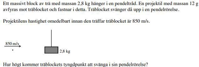 Jag gjorde två olika system för där jag hittade hastigheten som blocket+kulan hade vilket jag räknade ut med hjälp av rörelsemängd