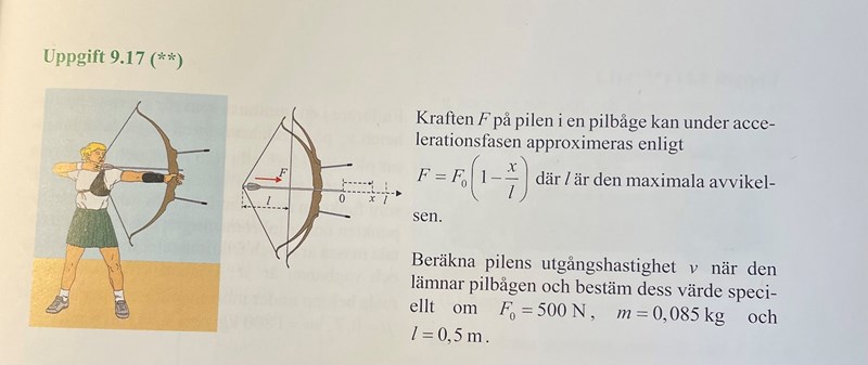 Så energin i bågen vid max utsträckning blir E = F0*l/2 (eftersom kx = F0 )