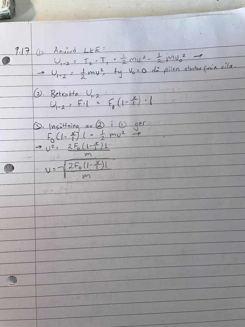 I vårt fall har vi F0 given som är kraften vid max utsträckning l.