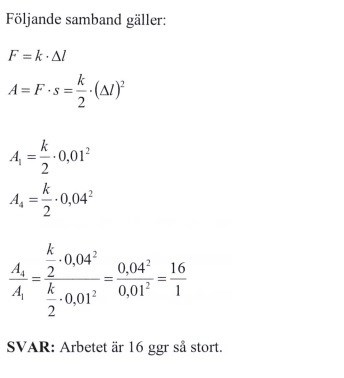 Arbetet är alltså proportionellt mot kvadraten på förlängningen, så en förlängning som är 4 ggr större kräver 16 ggr mer arbete