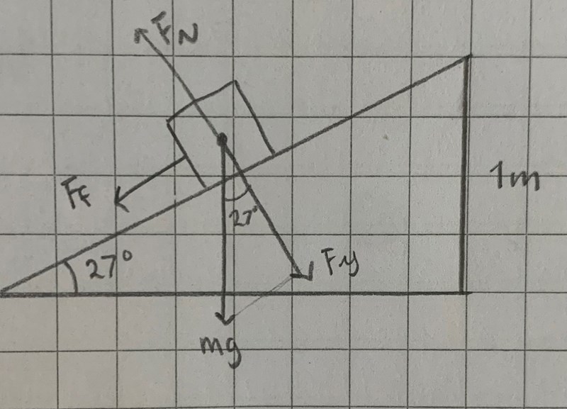 Tack, jag har gjort det. Och jag har bestämt hur stor normalkraften och sedan friktionen är, men hur ska jag räkna med det sen? Är friktionen ? Kan jag nu bara använda formeln för arbete?