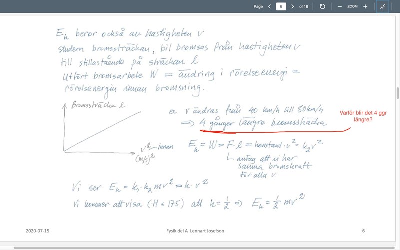 Alltså, ger . En fördubbling av farten ger en fyrdubbling av bromssträckan.