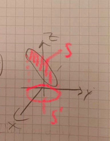 Om du parametriserar (vi låter x och y vara parametrar som vi döper om till u och v)så har du integralen nedan. Integrationsområdet är cirkelskivan i uv-planet som har arean S’. Vi kan flytta ut integranden då den är en konstant.
