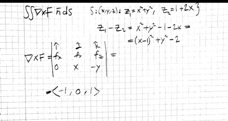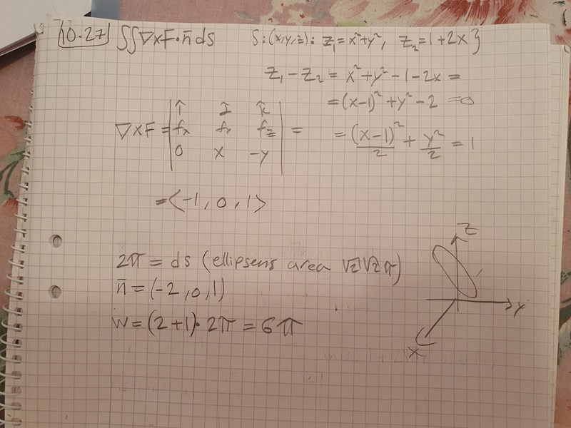 Klart! Tack för ditt tålamod PATENTERAMERA! Jag har parametriserat området med och räknade ut normalen och sedan rot F skalärt n, och tillslut integrerade från 0 till med radie från 0 till .