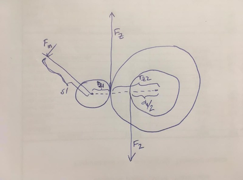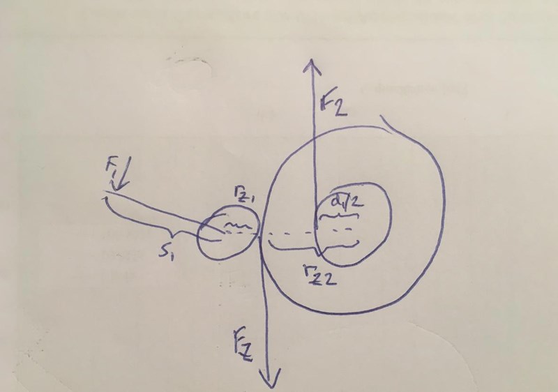 Antag två radier på kuggväxlarna, rZ1och rZ2.Vad är då hävarmen till kraften som på verkar periferin på Z2?