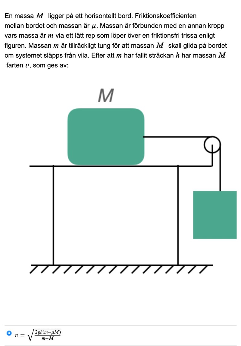 Det är den delen jag inte vet. Jag vet inte om T2 ska vara kinetiskt energi för stora massasn M eller lilla massan m