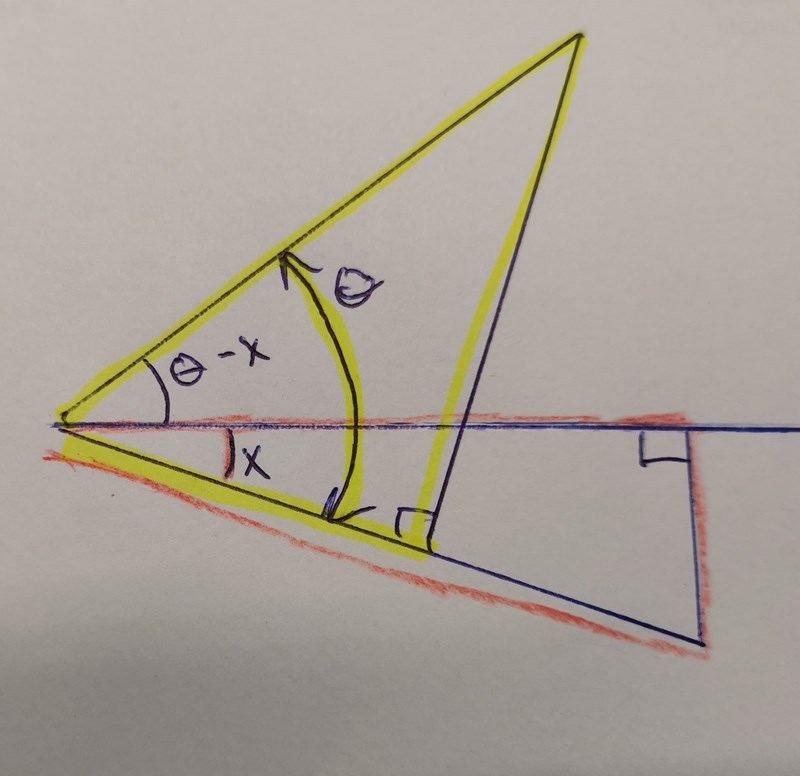 Den sökta vinkeln är sen arctan(tan(täta-x)) som jag skrev i förra inlägget.