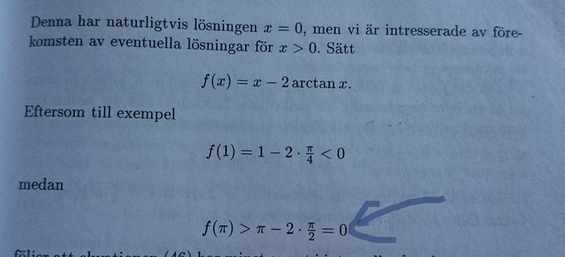 För stora x är då f(x) > 0 eftersom x växer obegränsat. T.ex är f(π) > 0.