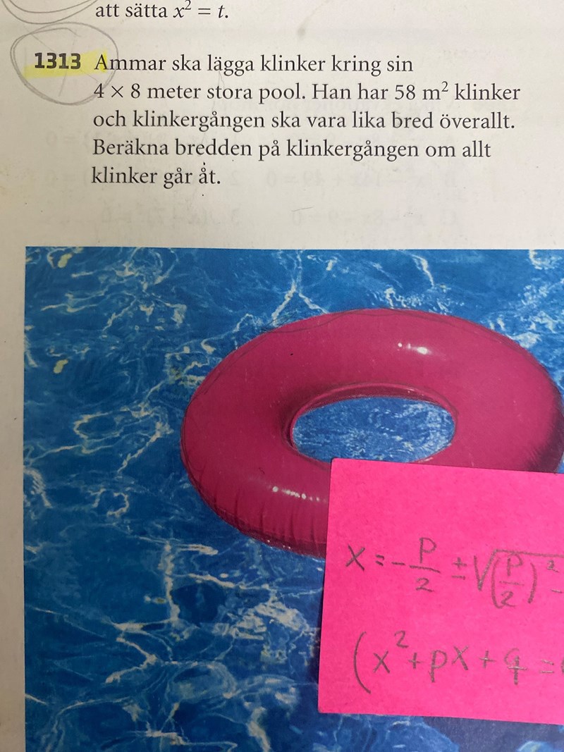 Rita en ram med klinkerplattor ("klinkergång") runt poolen, där ramens bredd är x.