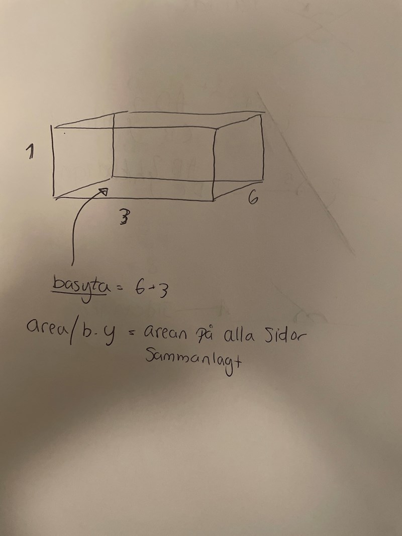 asså ett rätblock med ex måtten 6bred och 3bas 1 höjd . man kan ju räkma ut begränsningsytan på kroppen fast vad kommer hända med arean om begränsningsytan fördubblas