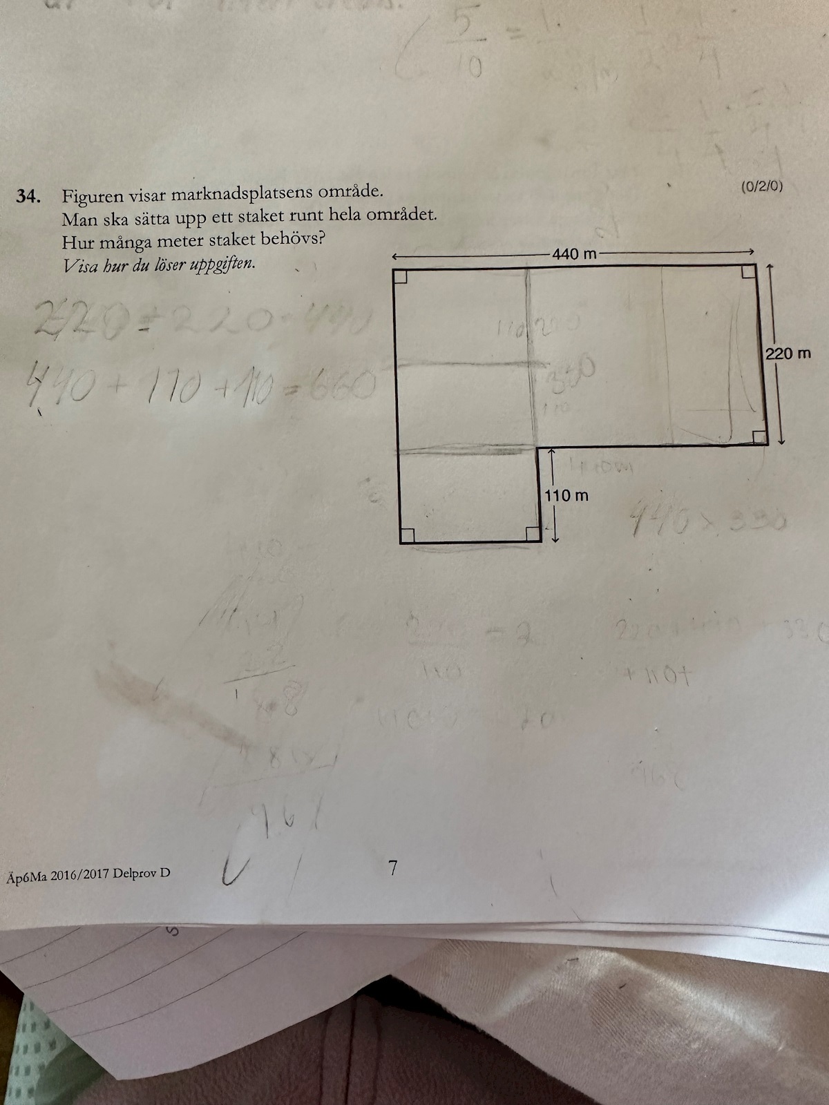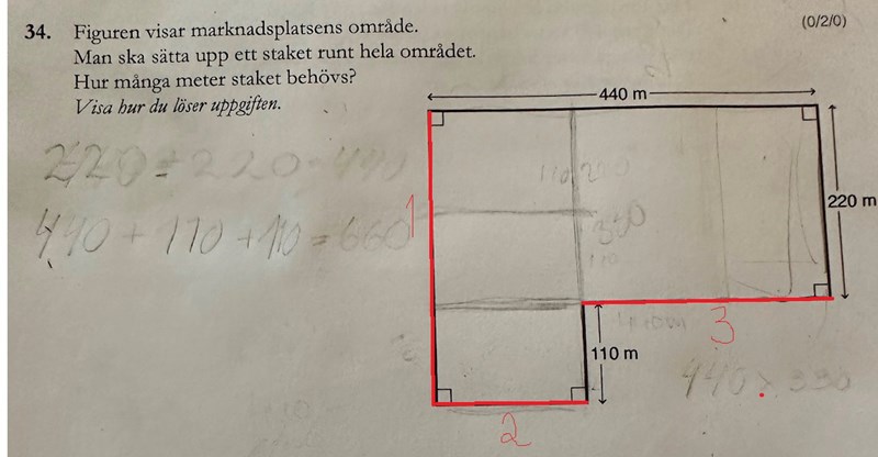 Den jag kallar för sida 1 ser du att den måste vara lika lång som de andra två kortsidorna ihop? 220+110=330