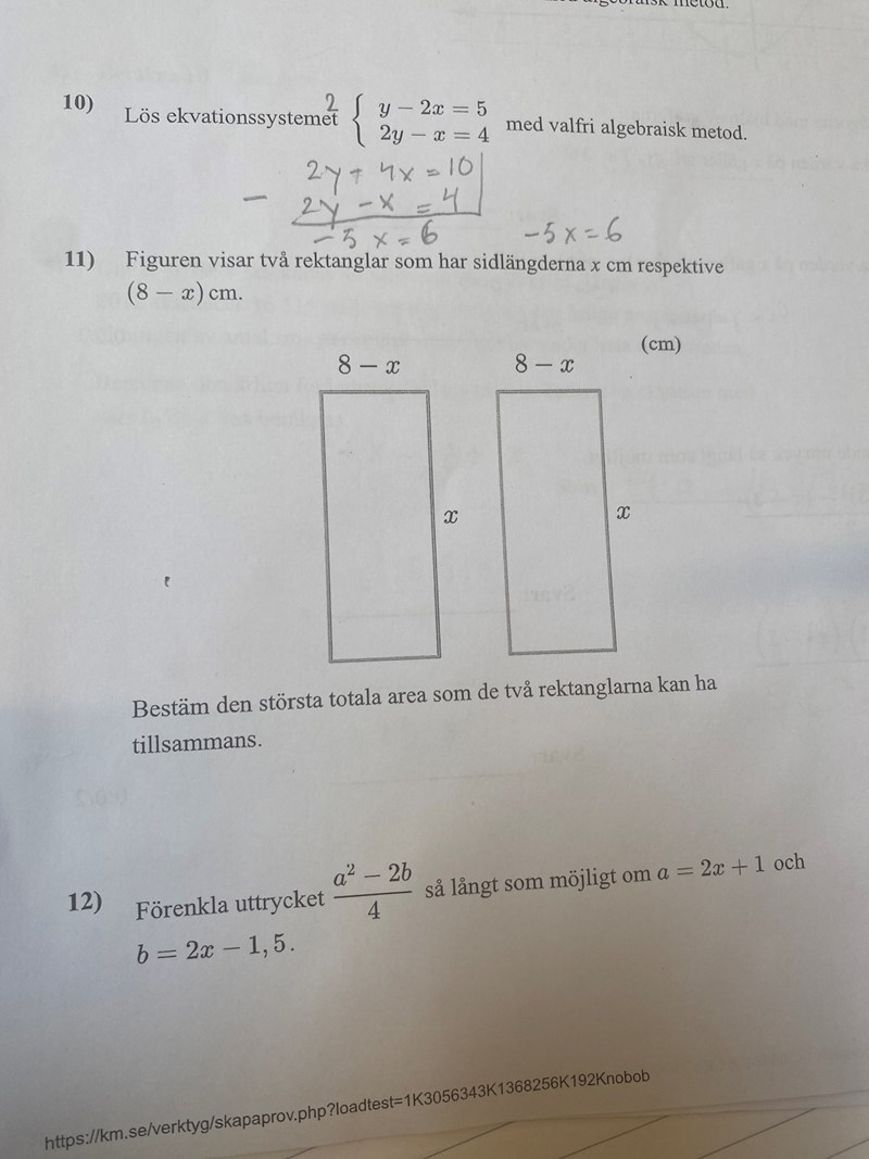 Har du t.ex. satt upp ett uttryck för den sammanlagda arean?