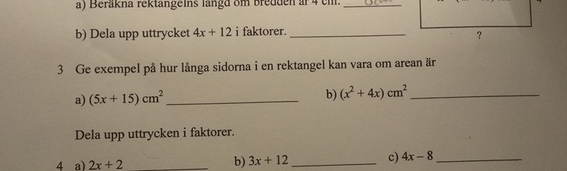 Nej, för att jag förstår inte ens vad jag gör. Jag kan ju faktorisera men hur ska jag veta hur lång den andra sidan är av att faktorisera?