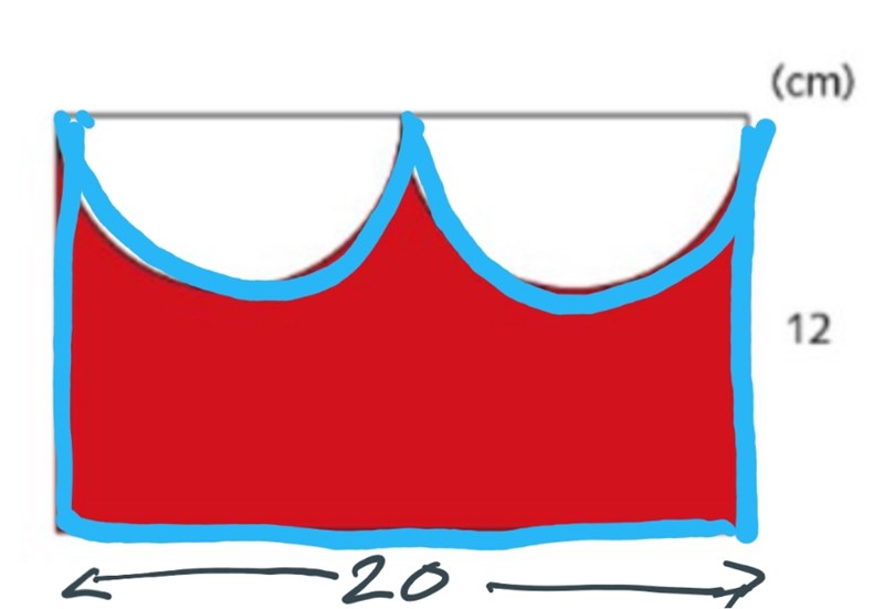 Rödaområdets omkrets= 12+12+20- 10pi (cirkelns)