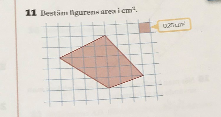 Förstår inte hur man löser denna. Jag har försökt att räkna alla hela rutor, vilket är 8 st, och sedan gångra med 0,25, men det måste väl finnas något lättare sätt än att räkna rutor?