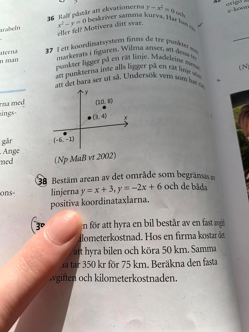 Hej! Jag behöver hjälp med uppgift 38. Så här långt har jag kommit: Antar att det är det ifyllda som jag ska beräkna.