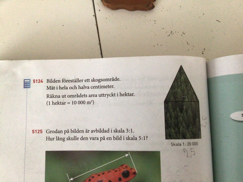 Undrar om en uppgift, så här lyder frågan: Bilden är ett skogsområde, räkna ut områdets area uttryckt i hektar (1 hektar= 10000 m2)