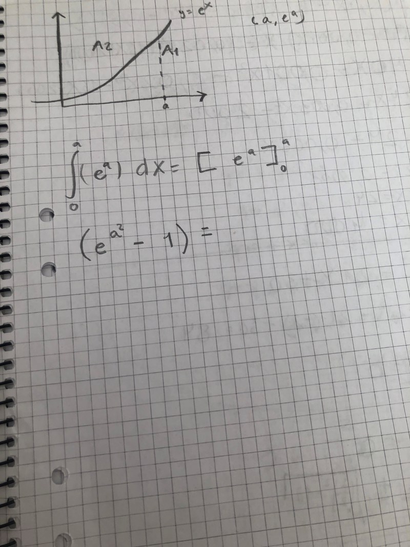 Arean A2 över y=e^x är ekvivalent med A1 under y=e^x från 0 till a. Vad är a?