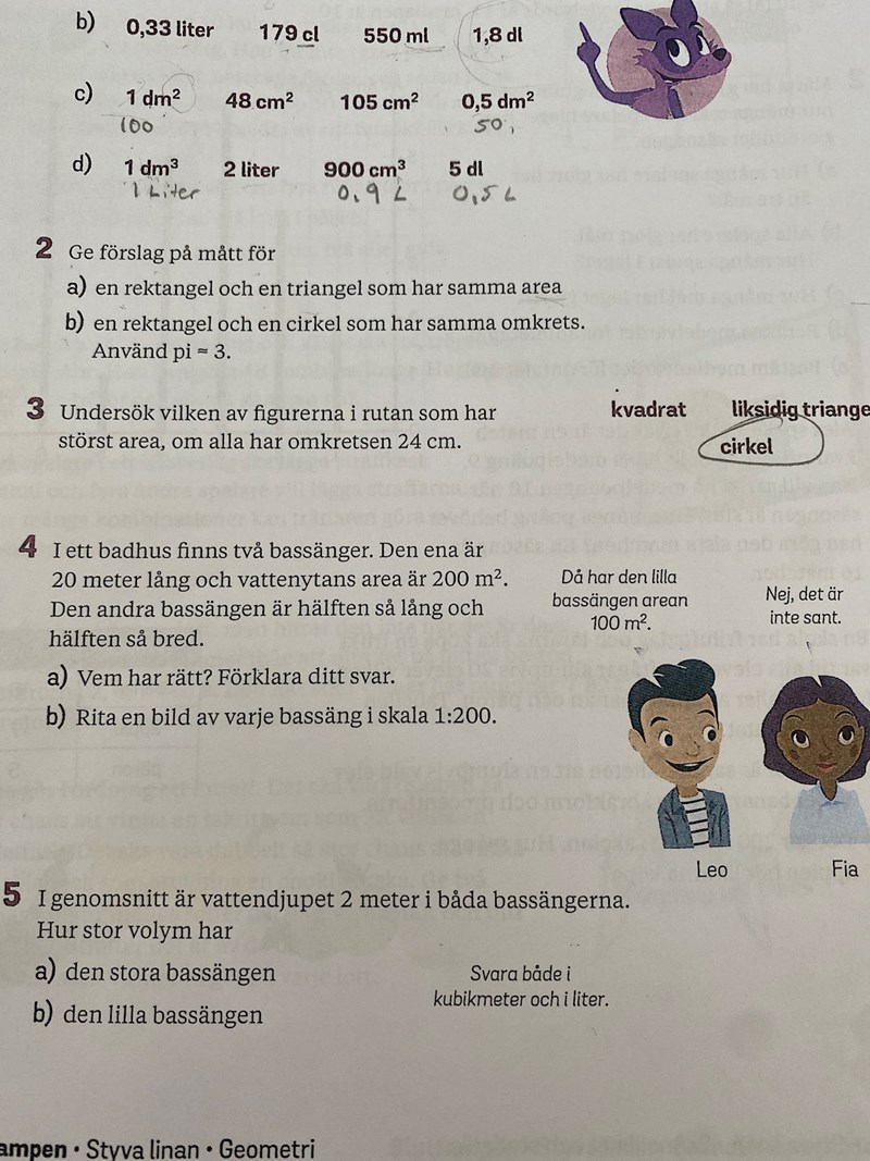 Gör om detta för den lilla bassängen, men istället för 200m2 så får du använda arean för den lilla bassängen (50m2